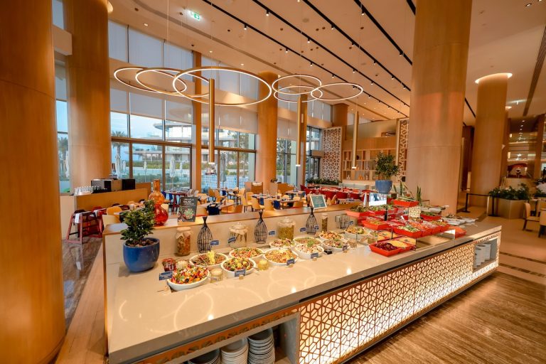 Located in the main lobby of JA Lake View Hotel, 81 Restaurant will serve a daily iftar buffet throughout Ramadan. The buffet is priced at AED 249 per adult and AED 125 for children. The menu changes each evening, offering variety while maintaining traditional Ramadan dishes. The restaurant features seasonal décor, Arabic coffee served during iftar, soft beverages, and live oud music.
