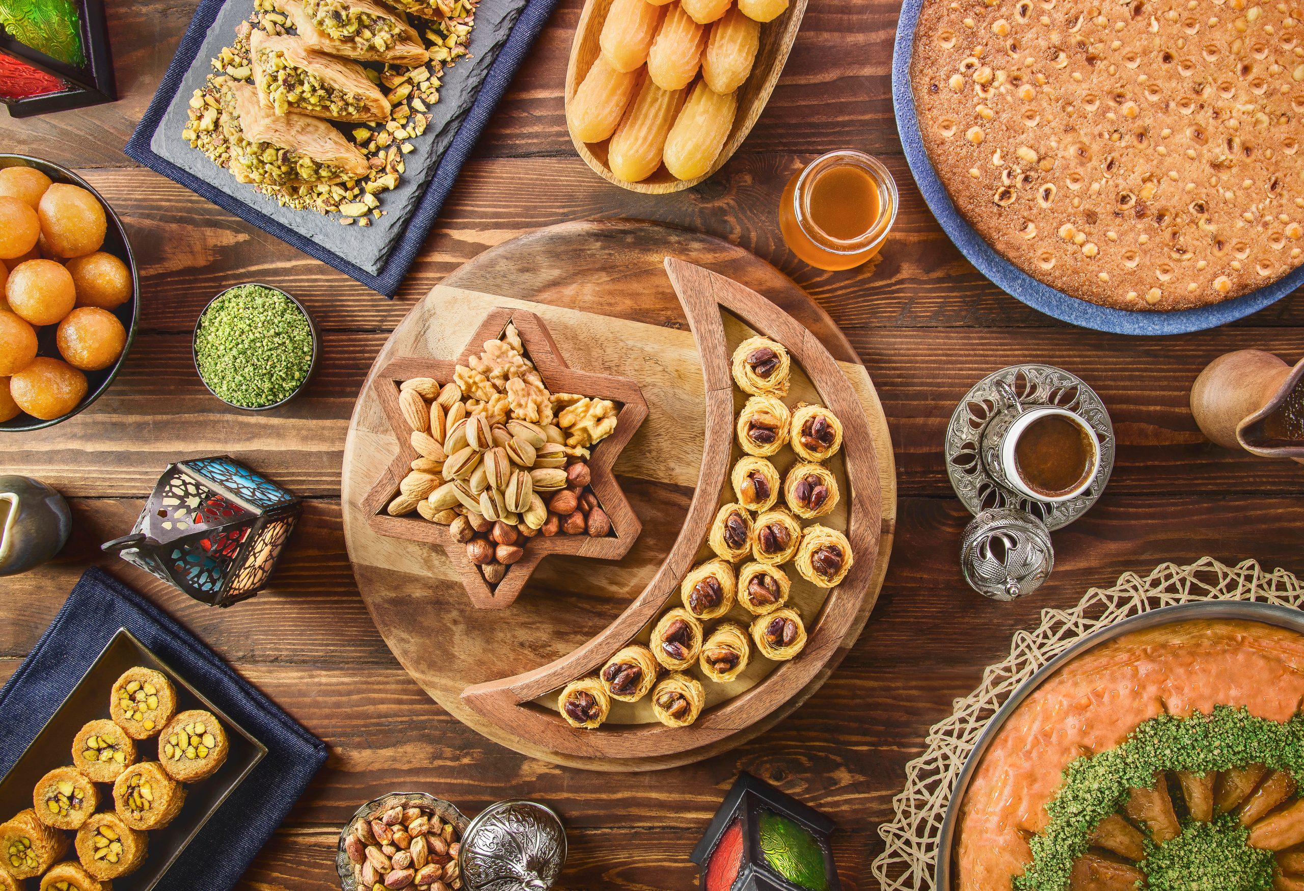 Take the hassle out of hosting Iftar with a perfectly succulent lamb ouzi, expertly prepared by the chefs at The H Dubai. Available for takeaway throughout Ramadan, this tender, slow-cooked, Oriental-marinated dish can be ordered as a lamb leg for smaller at-home gatherings at AED 650, or as a whole lamb, ideal for larger office feasts, at AED 1,600. Each order is served with a choice of Oriental or Mandi rice, alongside three cold mezze, yoghurt, and tomato salsa. For an added touch of indulgence, complete the experience with any two desserts for an additional AED 200.